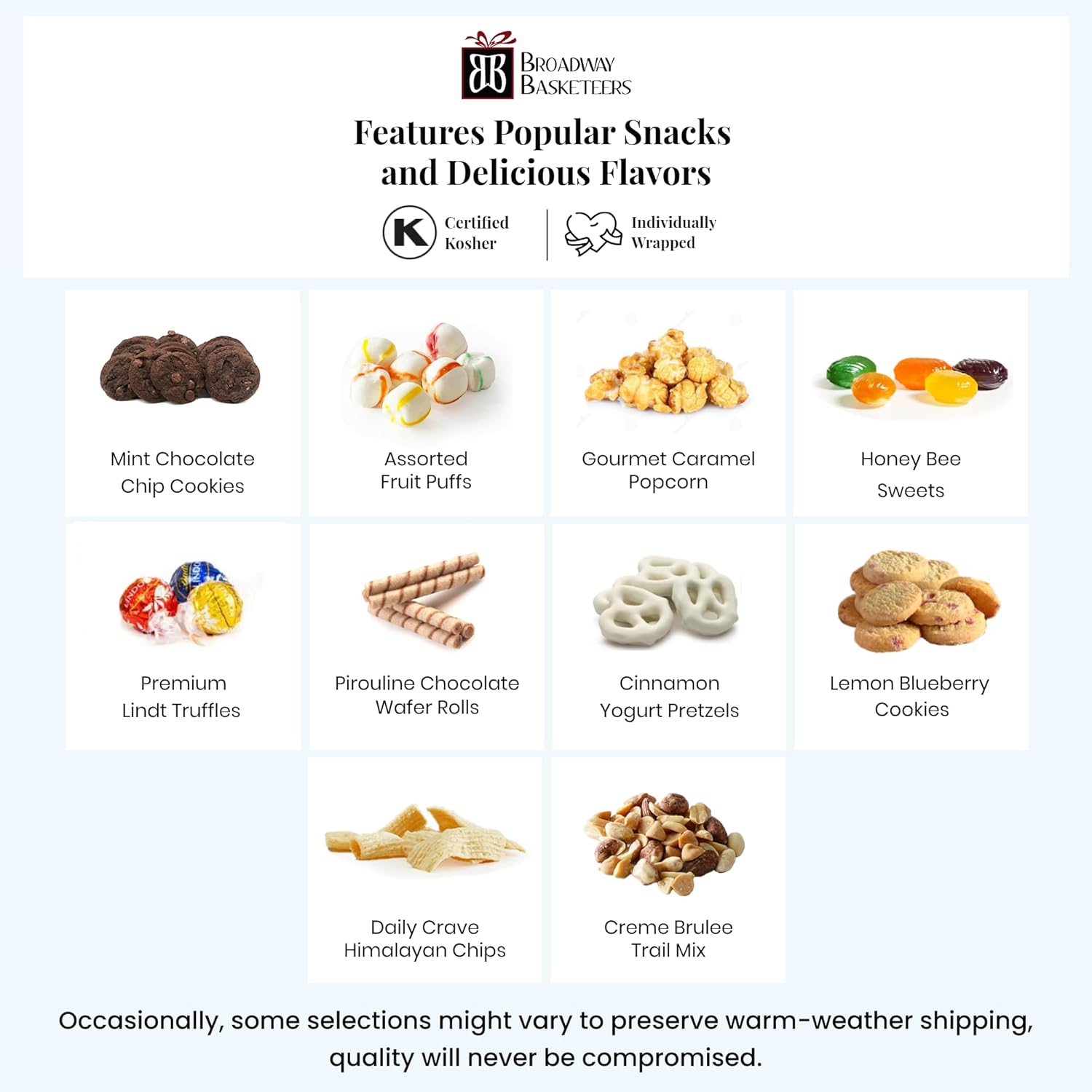 certified kosher & ebt eligible – crafted in our certified facility, every kosher gift basket ensures quality, freshness, and inclusivity for everyone on your gift list; send gourmet snacks with confidence knowing standards are met and the experience is consistently reliable.